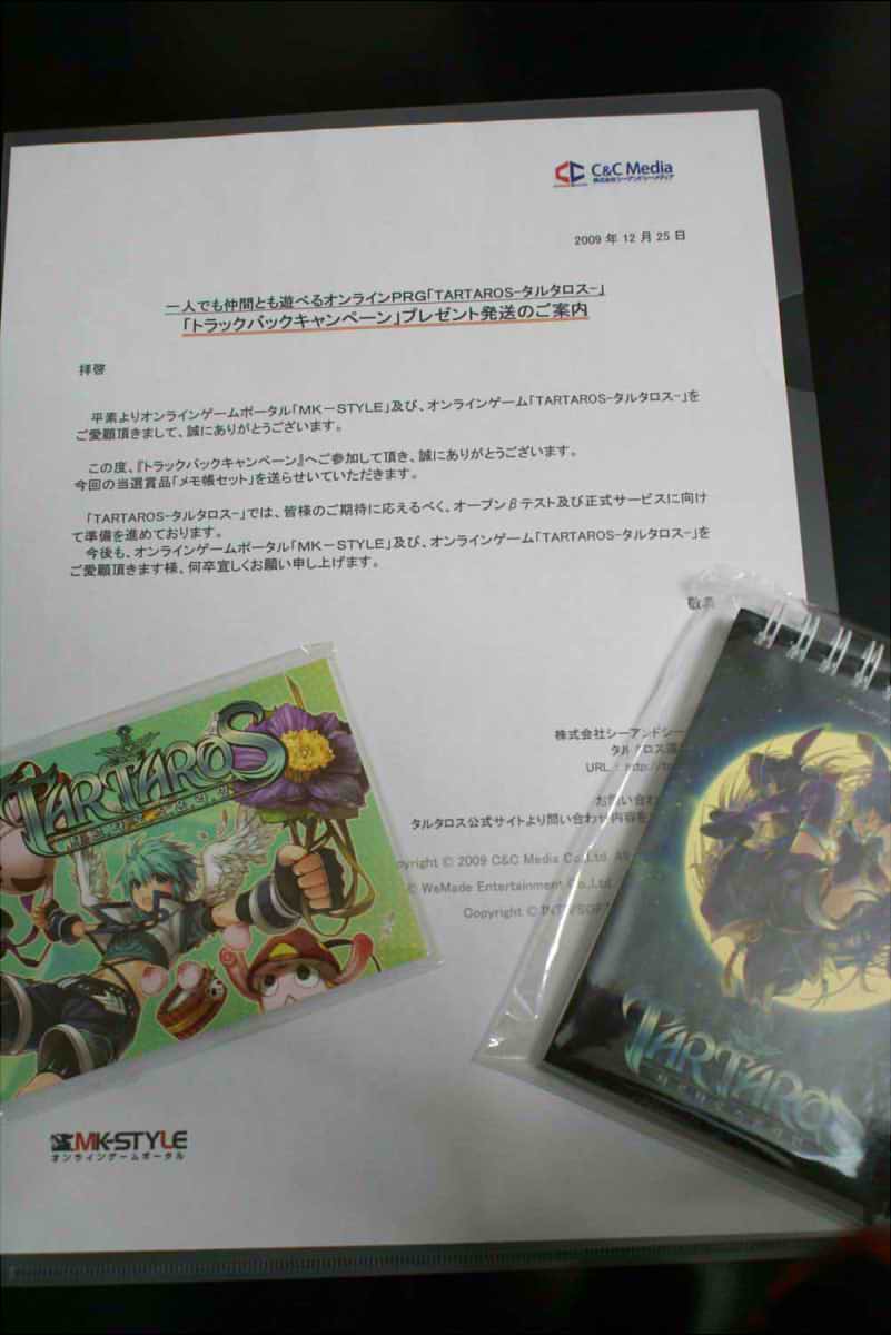 えっとね、本当はCβT募集期間中にブログをファンサイト登録すればタルタロスをプレイ出来る!という物があったのでそれに応募したかったのだけど知識のない私には無理な話とあきらめていたのですよ・・・orz